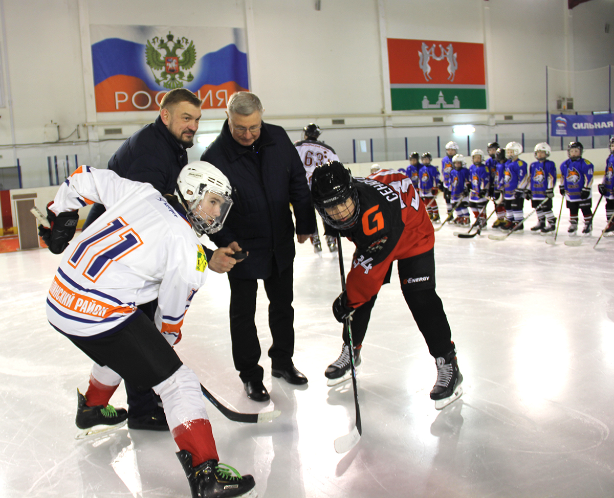 После подписания соглашения состоялось символическое вбрасывание шайбы, которое провели глава района И.И. Куцевич, директор академии К.С. Алексеев, защитник команды «Авангард-2011» Глеб Сенюков и нападающий команды «Лисы» Савелий Курбатов.