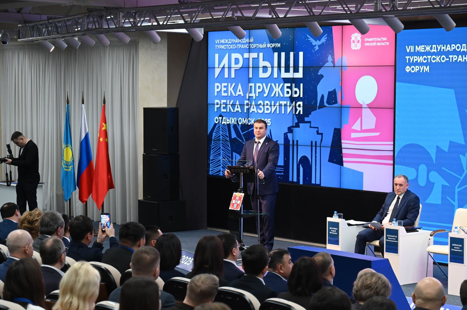 Открывая пленарную сессию, Губернатор Виталий Хоценко подчеркнул значимость реки Иртыш как важнейшей связующей артерии России, Казахстана и Китая.